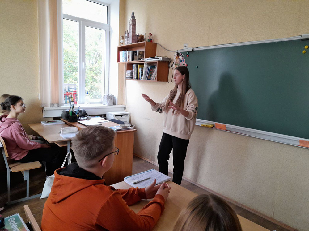 19.10.2023 - Цікаві зустрічі! Вихованці гуртка "Merry English" мали змогу поспілкуватись з Лізою Пилипчук, вихованкою БДЮТ, що взяла участь у програмі "You Lead" та відвідала Сполучені Штати Америки
