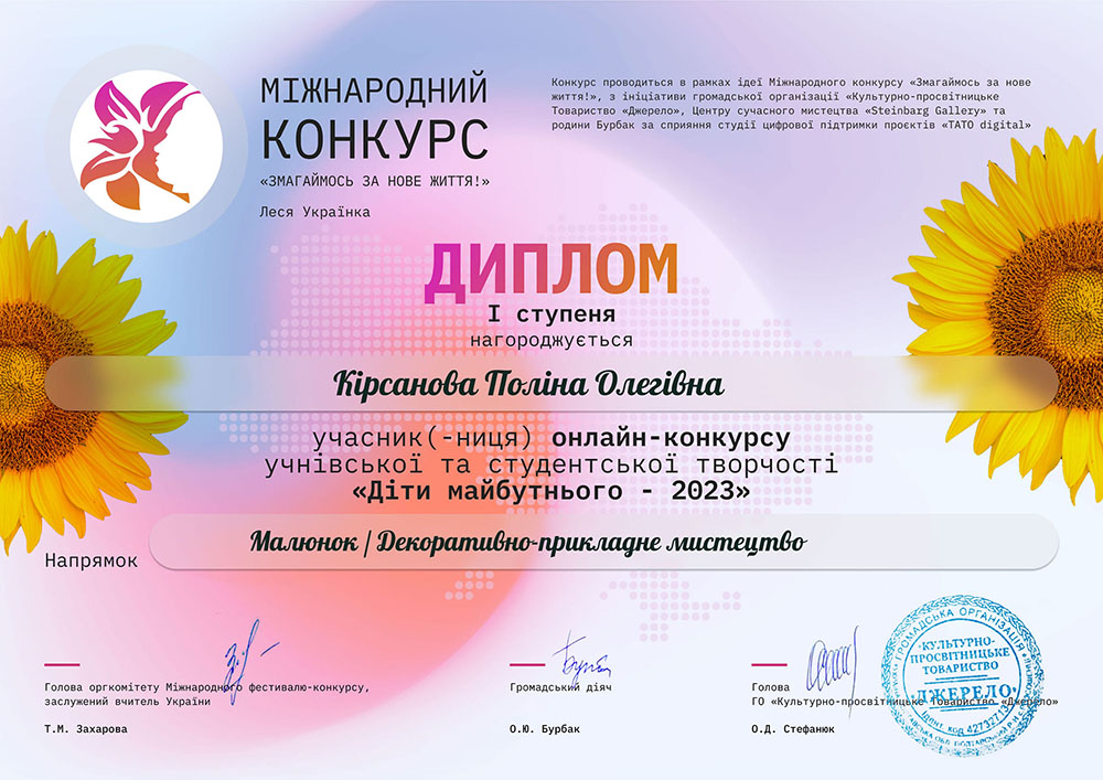 20.11.2023 - Вихованці гуртка "Академія Олівця" Бориспільського БДЮТ "Дивоцвіт" отримали перемоги у міжнародному конкурсі "Змагаймося за нове життя".