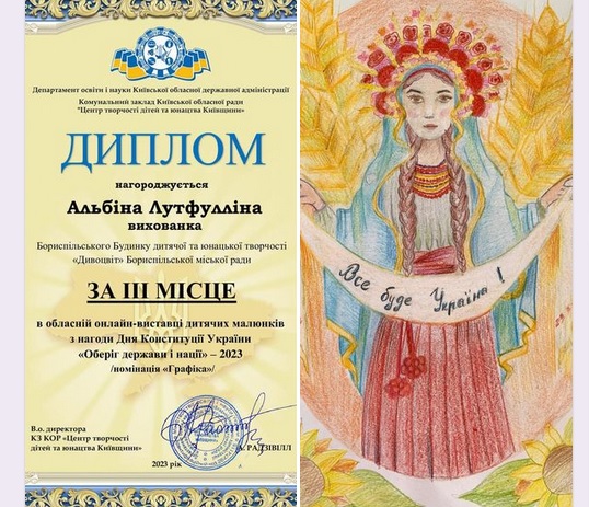 Вітаємо Лутфулліну Альбіну за зайняте ІІІ місце в обласній онлайн-виставці дитячих малюнків з нагоди Дня Конституції України «Оберіг держави і нації»!