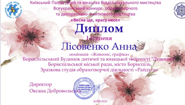 21.05.2023 - Вітаємо переможців! Зразкова студія образотворчої діяльності «Райдуга»