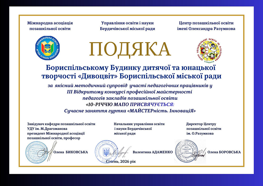 23.01.2026 - Щиро вітаємо педагогів Бориспільського БДЮТ «Дивоцвіт»