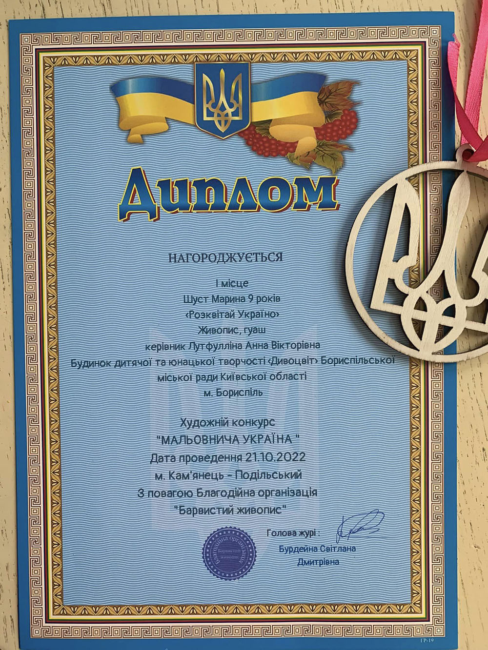 Зразкова студія образотворчої діяльності «Райдуга» вітає дівчат з перемогою в онлайн конкурсі «Мальовнича Україна»: