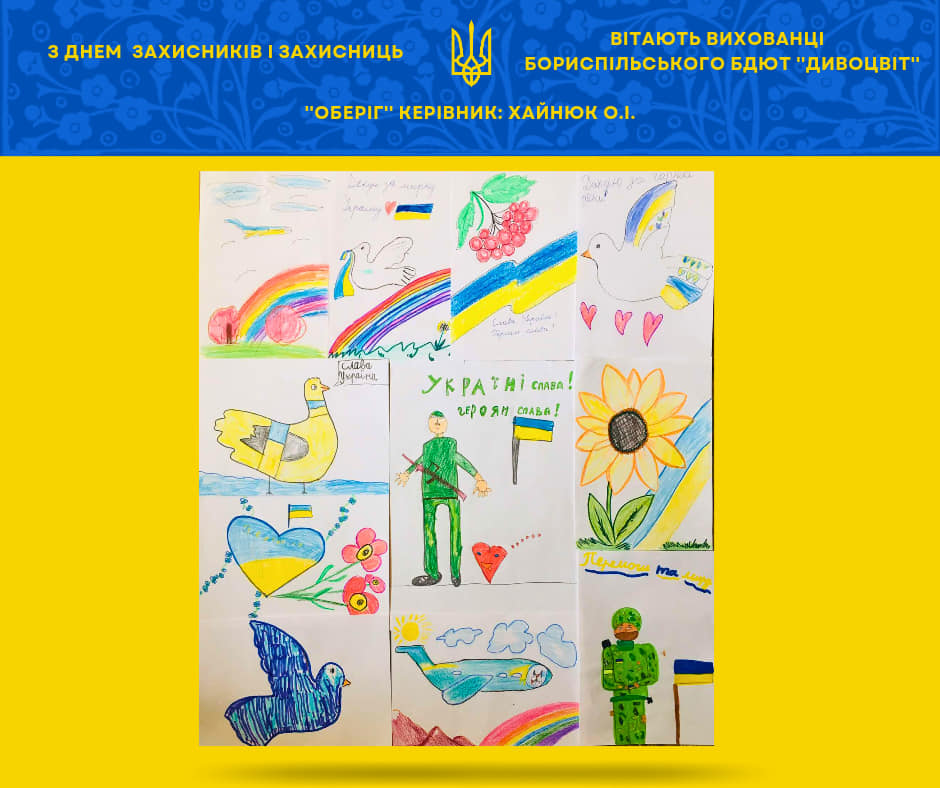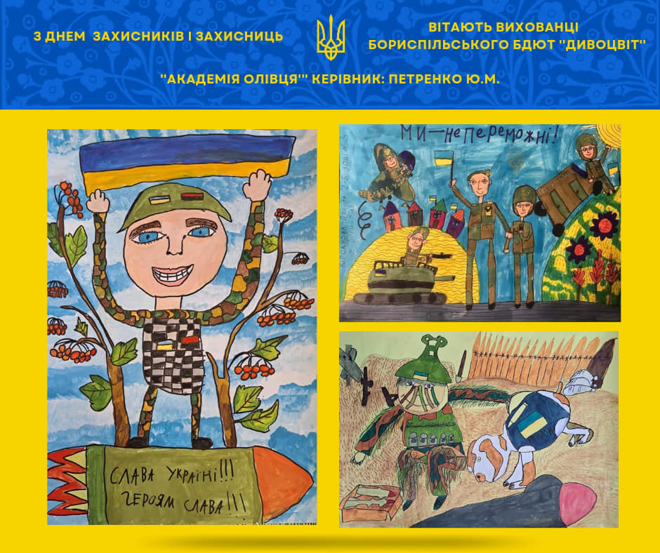 Вихованці та колектив Бориспільського БДЮТ "Дивоцвіт" вітають всіх захисників і захисниць України, які щодня роблять неймовірне та борються за нашу з вами перемогу!