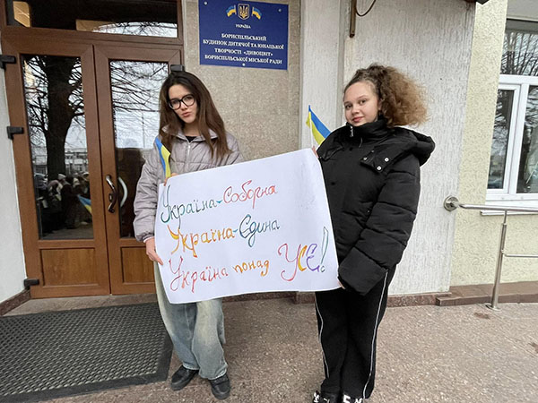 Напередодні Дня Соборності зібралися на площі діти - лідери ліцеїв нашого міста, щоб взявшись за руки продемонструвати свою причетність до великих історичних подій. Україна Соборна! Україна понад усе!